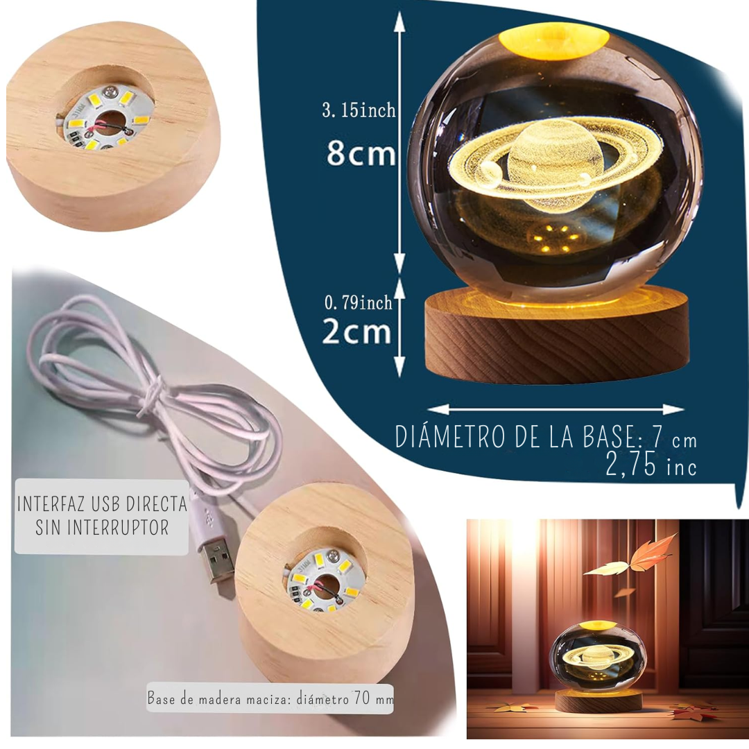 🌌 Lámpara 3D Saturno de Cristal | Un pedacito del universo en casa